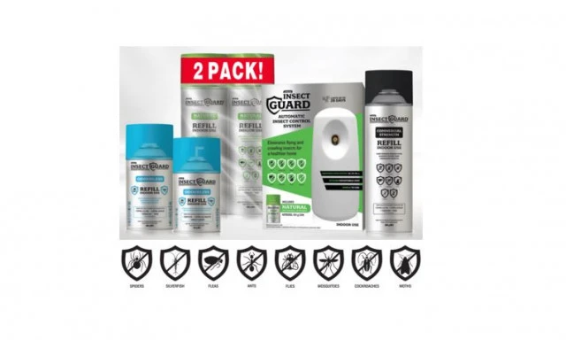 Automatic dispensers like our NO Flies Automatic System or Insect Guard Fly Control System are a great option for indoor living areas. They provide continuous protection against flying and crawling insects reducing the number of insects that enter a room.