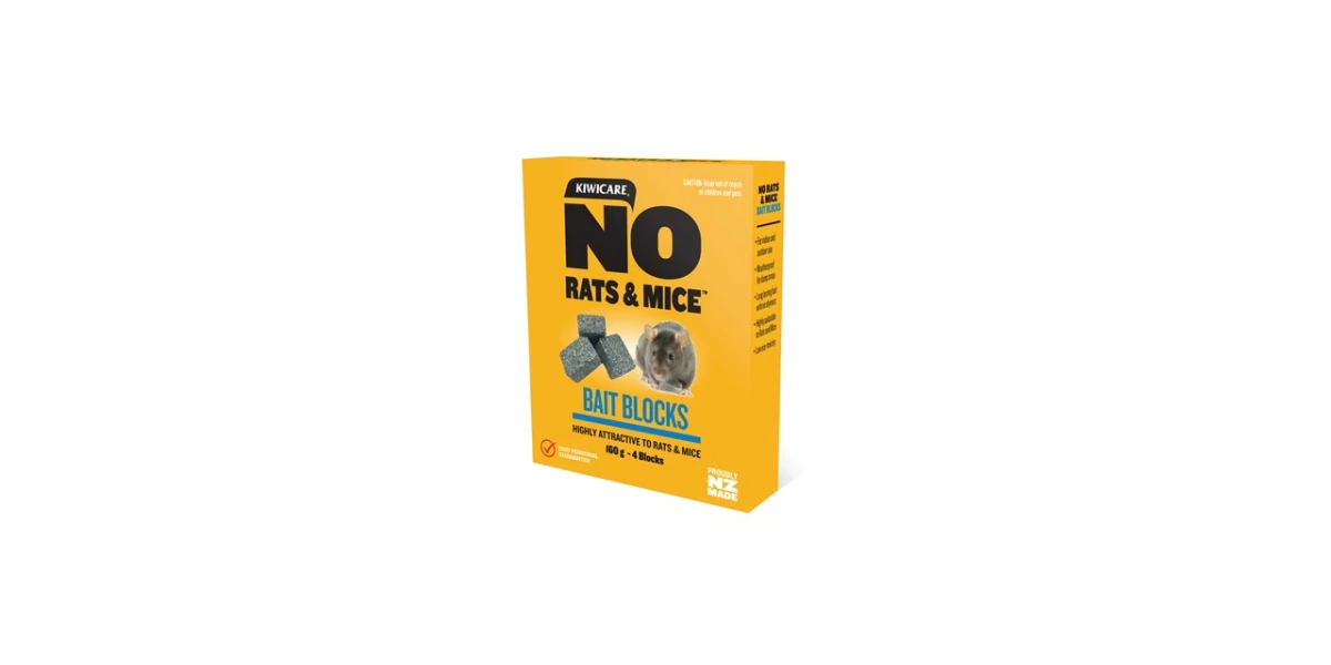 - Place bait blocks in dry, sheltered and secluded places where rats and mice have been feeding or travelling, preferably where rodents can eat without being disturbed and non-target animals cannot access the bait. A covered bait station is a great option. E.g. Kiwicare NO Mice Bait Stations or NO Rats Bait Stations.