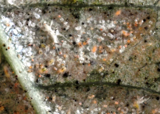 Spider mites are very tiny, usually red, bugs that damage leaves causing yellow speckles.