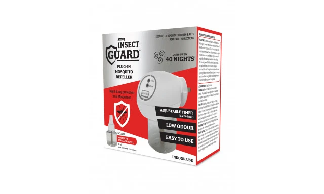 This plug–in mosquito repeller provides night & day protection from mosquitoes.