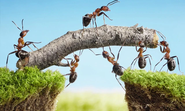 Groups of social insects, including ants, increase their efficiency through division of labour and good communication.