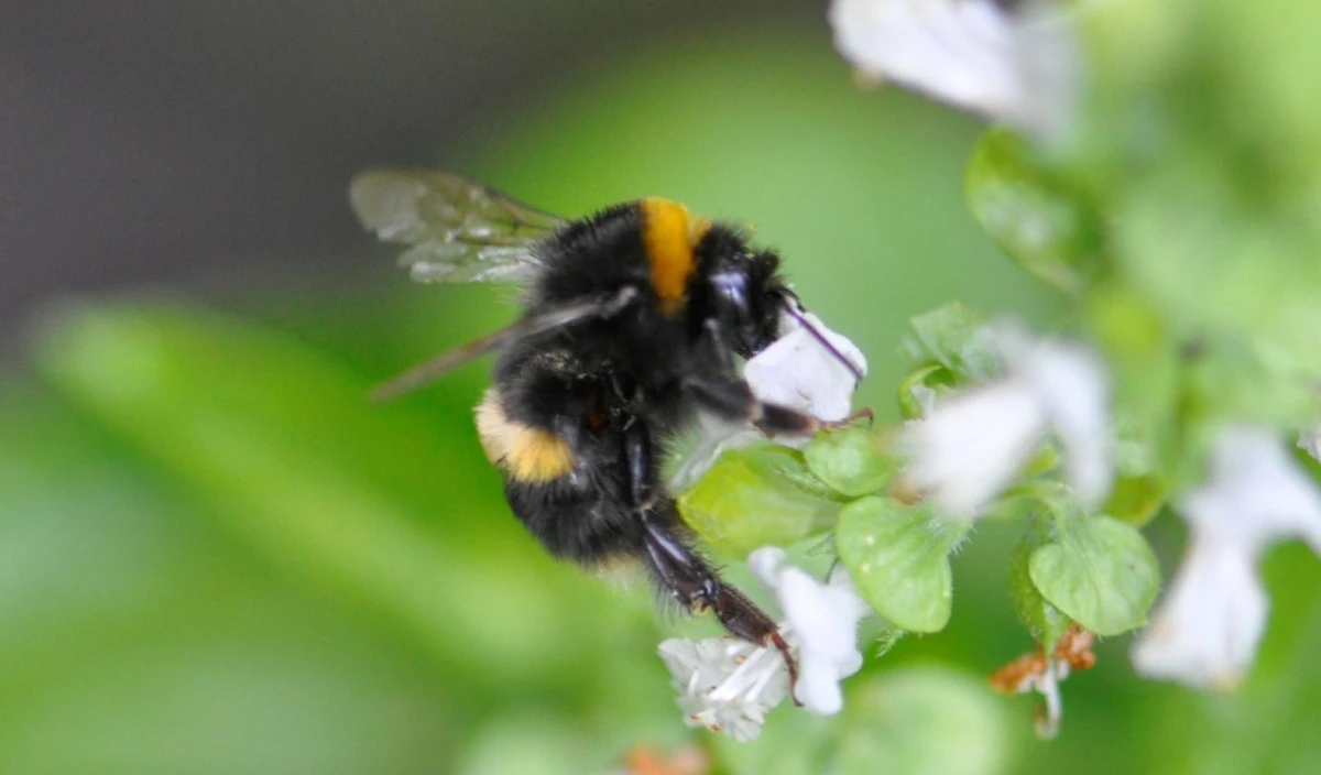 Bumble bees are beneficial insects. They are large round hairy bees that are often seen feeding at flowers in a garden and they may occasionally wander or fly indoors.