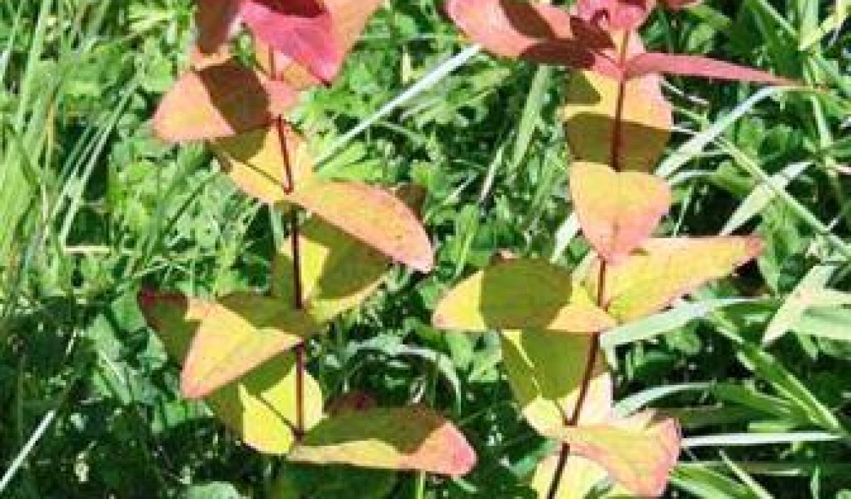St. John's wort is a hairless erect woody weed up to a metre tall with clusters of yellow flowers. Tutsan looks similar but grows to 1.5 metres.