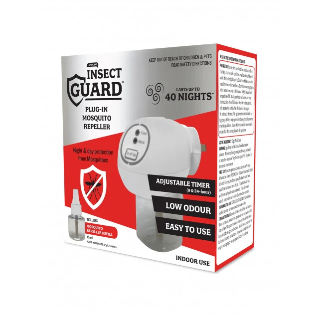 This plug–in mosquito repeller provides night & day protection from mosquitoes.