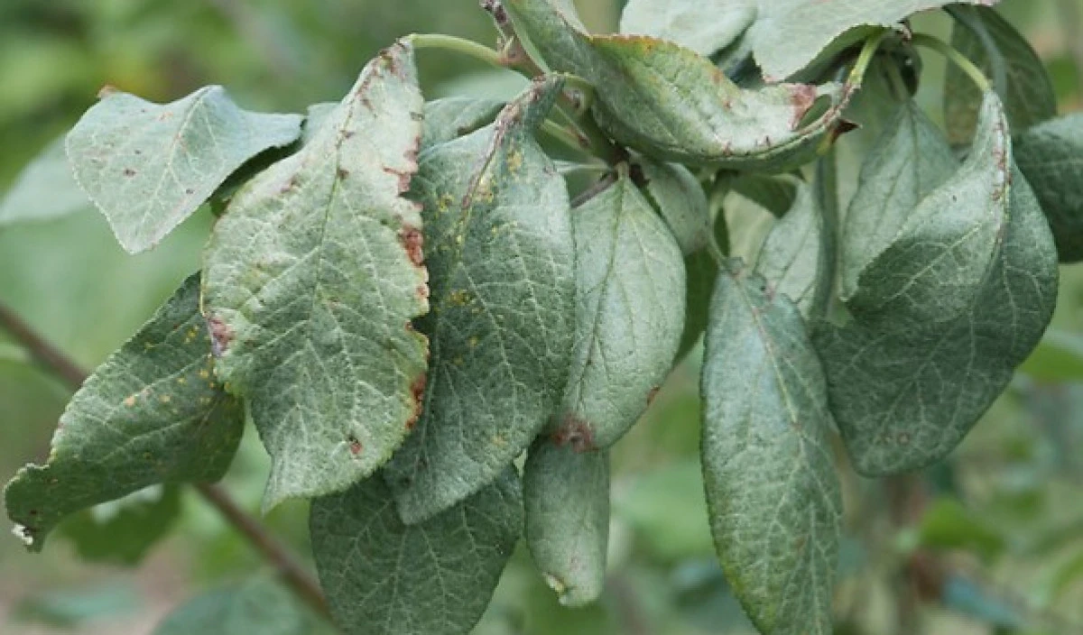 Silver leaf is a fungal pathogen that infects a wide range of woody trees and shrubs. Leaves turn silver and infected branches die back.
