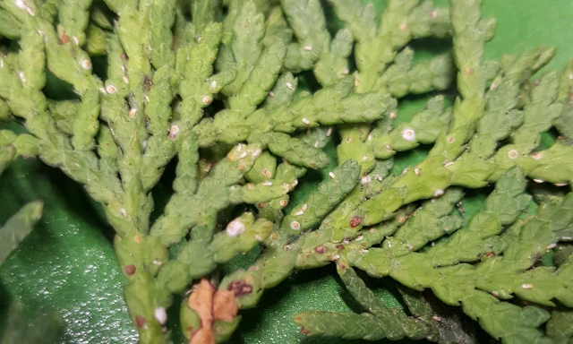 Juniper scale are sap sucking insect that attack a wide range of conifers.